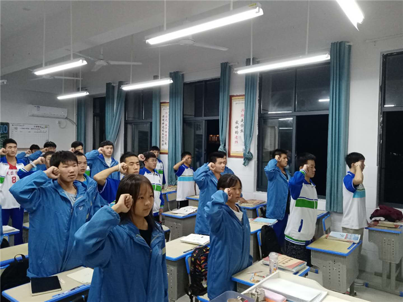 全體師生起立,高舉右手宣誓: